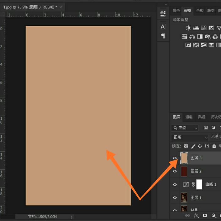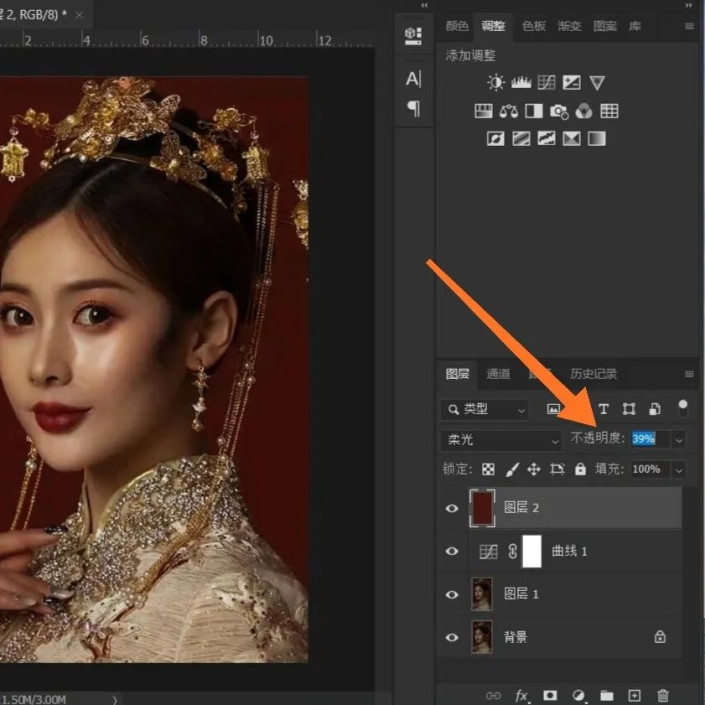 2、调整亮光,打开曲线面板,向上调整亮光。