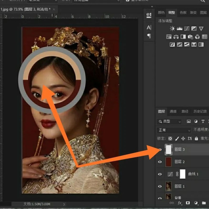 7、修复人物,新建一个图层,吸取皮肤的颜色。