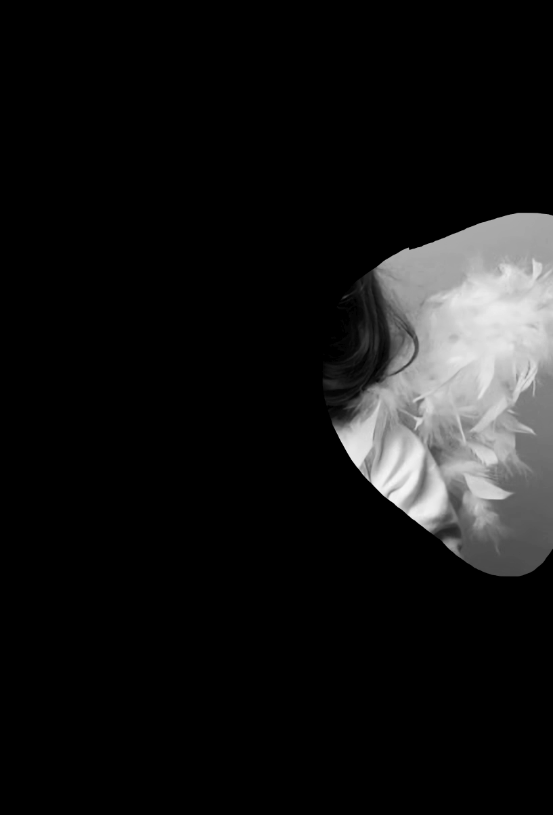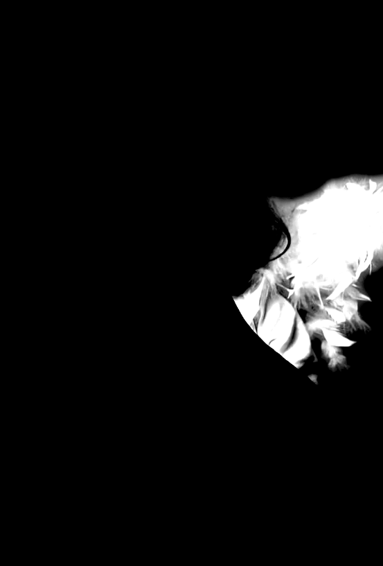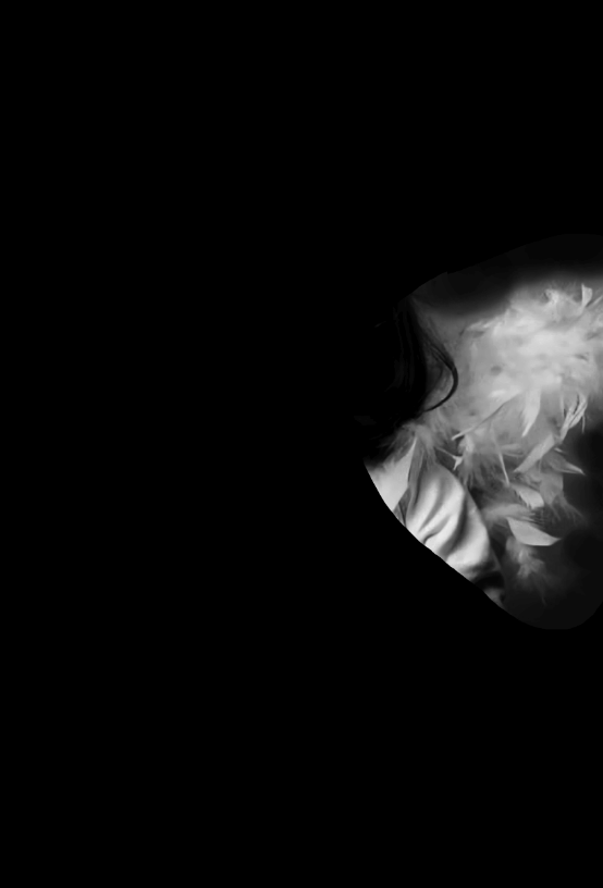 14、套索工具创建选区,框选右侧羽毛,反选,填充黑色;