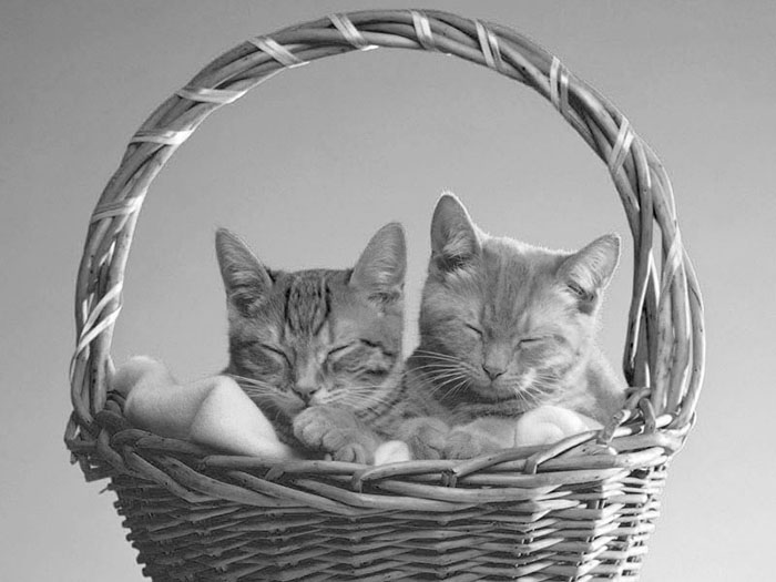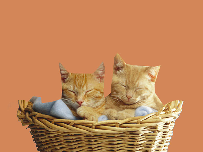 1、背景是由深蓝到浅蓝的渐变,乍一看并不复杂,但是你仔细分析后,会发现:竹篮的提手部分有一些蓝色的斜纹,并且猫咪的毯子其实也是偏蓝色的。