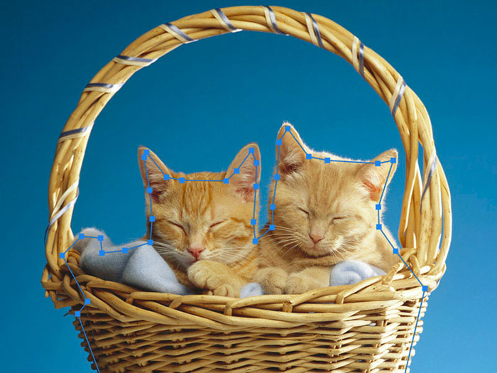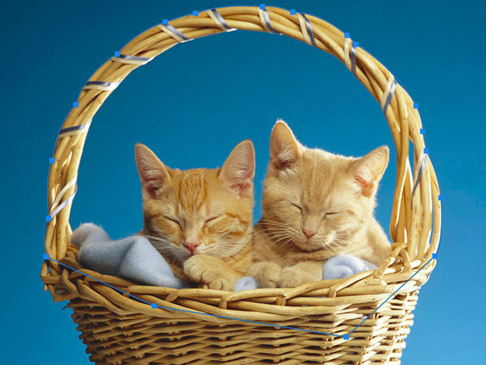 2、切换为钢笔工具,沿竹篮底部,猫咪边缘绘制路径,绘制好的路径如下图。