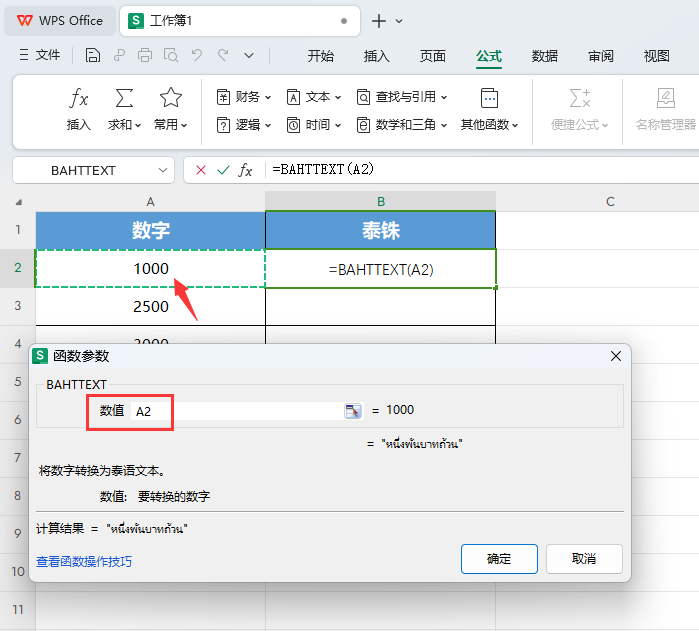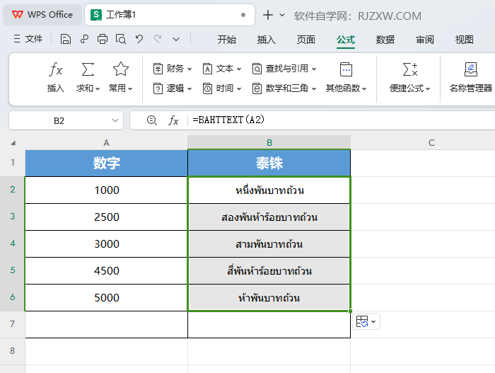 2、选中一个单元格,点击公式,点击文本,选择BAHTTEXT函数。