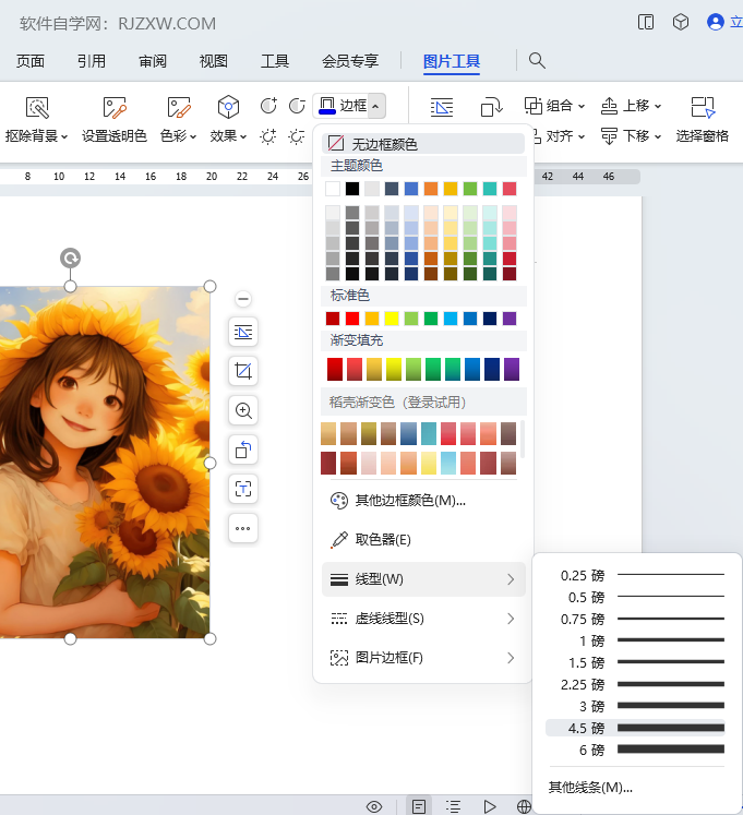 4、这样图片就添加了边框。同样宽度也是这样设置。