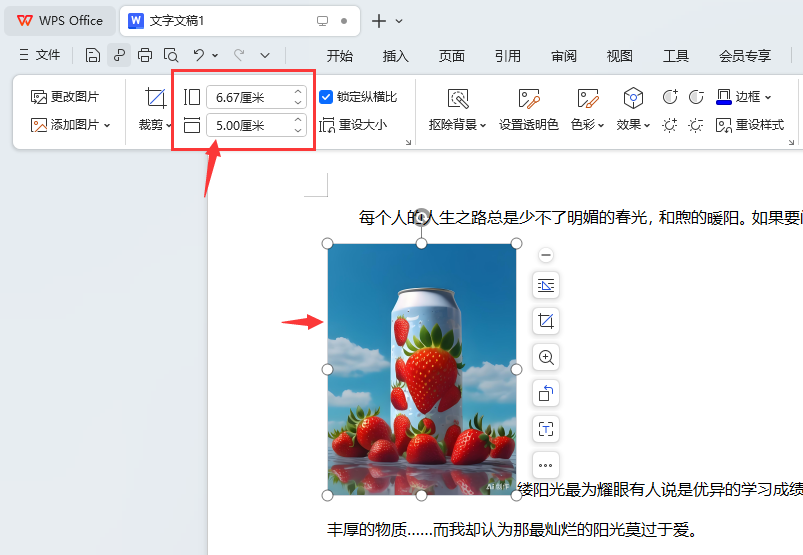 2、选中图片,点击图片工具,找到尺寸大小的位置。