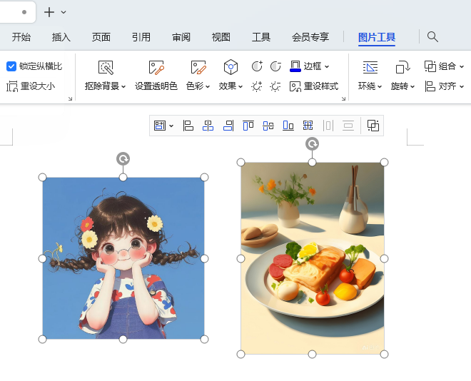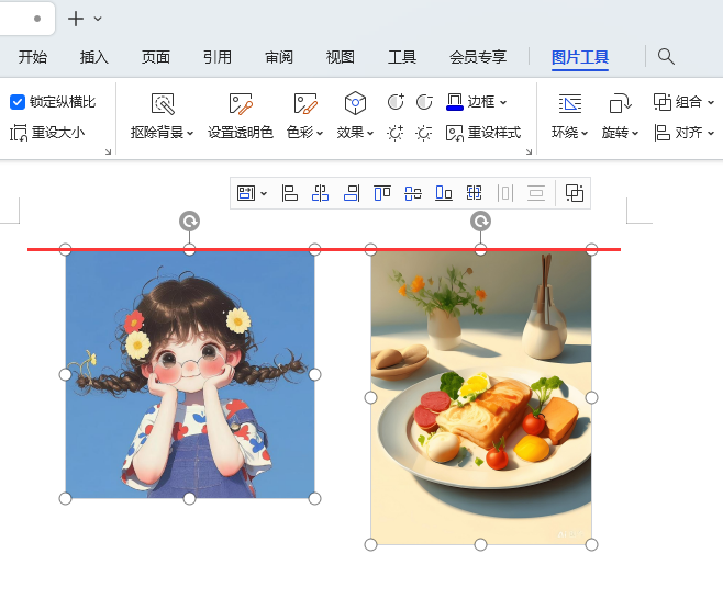2、选择【两张图片】对象。点击上面的【顶端对齐】图标。