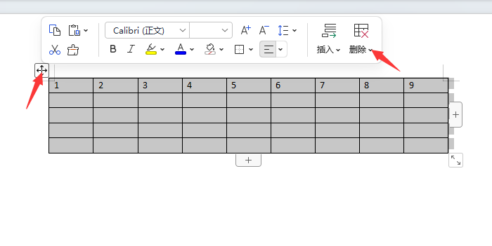 1、选择表格前面的箭头,点击对话框里面的删除。