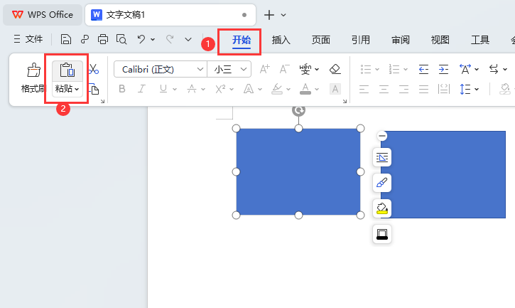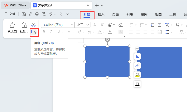 3、选中要复制的矩形,点击开始菜单里面的复制图标。