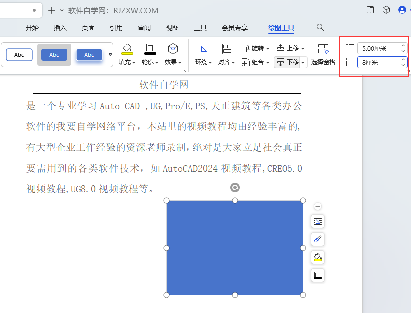 2、找到属性栏上面的尺寸设置。然后就可以修改相关的尺寸。