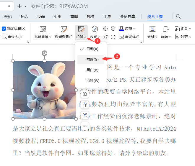 2、然后选择【图片】,点击【色彩】,选择【灰度】。