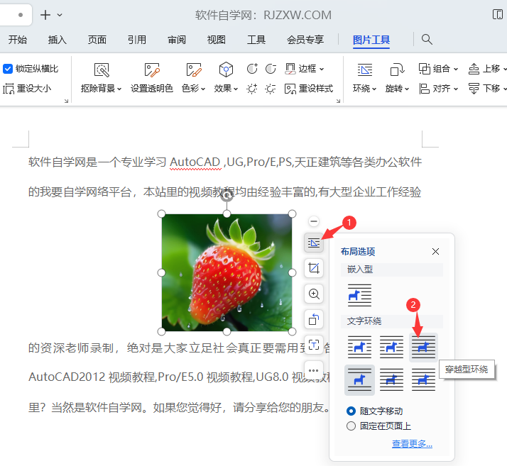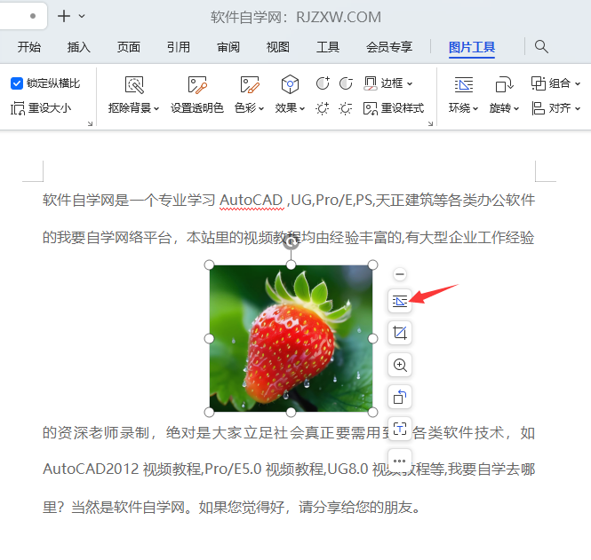 1、选择【图片】,弹出右边的【对话框】,点击【布局选项】图标。