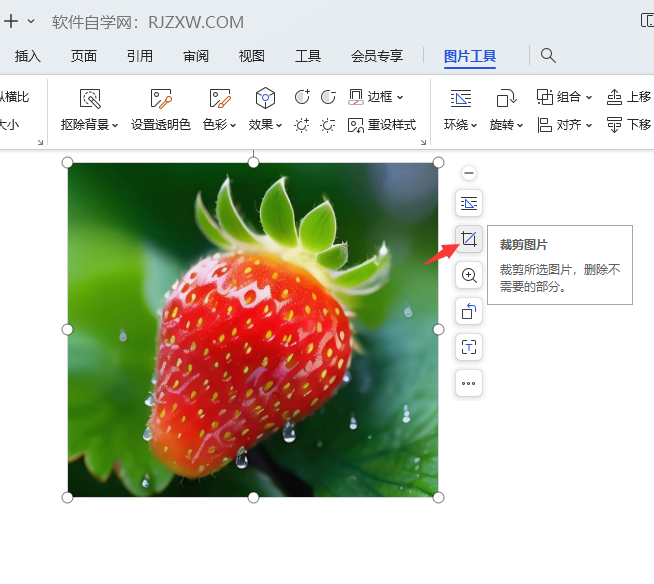 2、然后点击【图片】右边的【裁剪图片】图标。