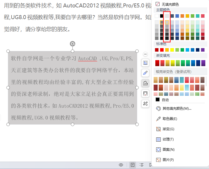 4、另一种方法,选中文本框,点击绘图工具,点击轮廓设置里面的颜色。