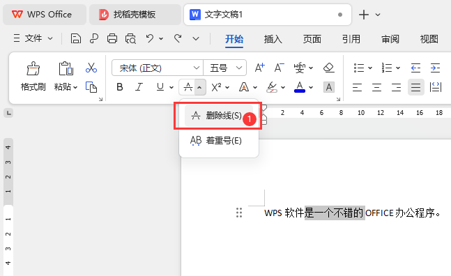 3、然后这样就可以点击删除线选项。如下图: