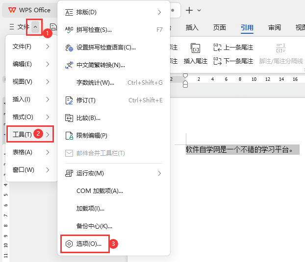 2、然后点击文件菜单,点击工具选项,点击选项。如下图: