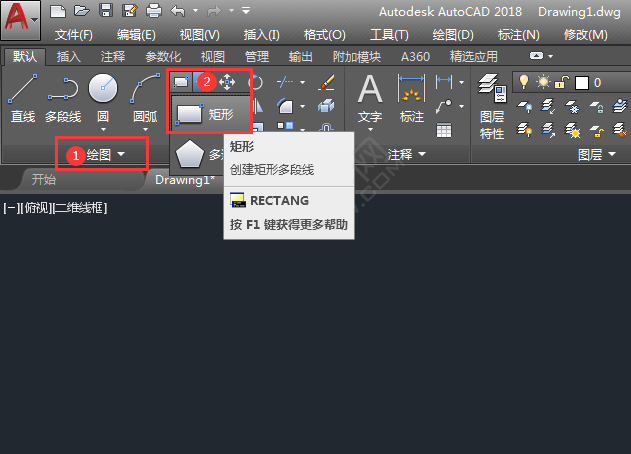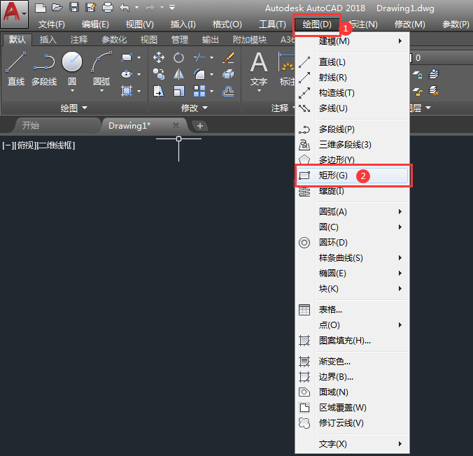 2、在菜单栏上,找到绘图菜单,在里面也就可以找到矩形工具。