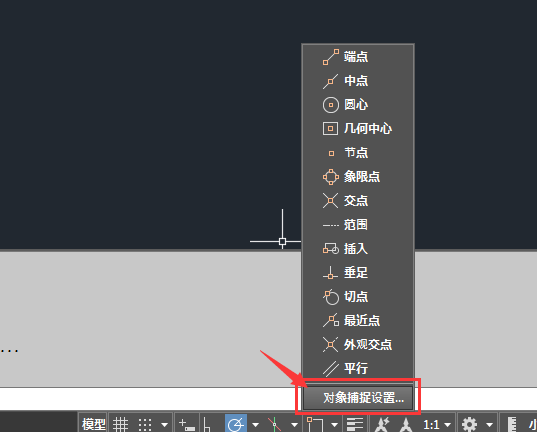 第1步、打开CAD2019软件,点击对象捕捉后的小三角形图标,在切点前面打勾处理。
