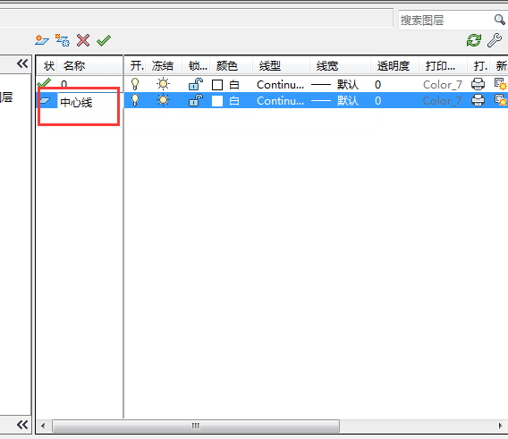 第1步、打开图层特性管理器,找到要修改名字的图层。