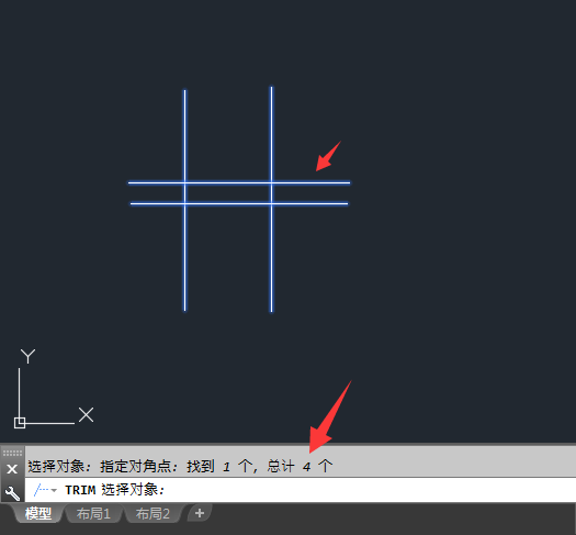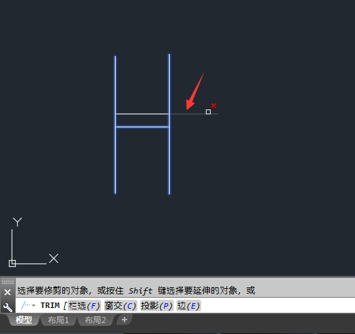 第1步、点击修剪工具图标,或是输入TR修剪命令。输入命令后空格。