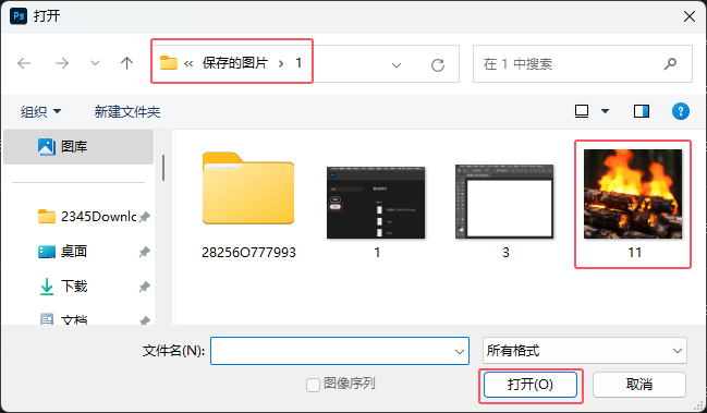 2、弹出打开面板,选择有图片的文件夹,选择PNG图片,点击打开。