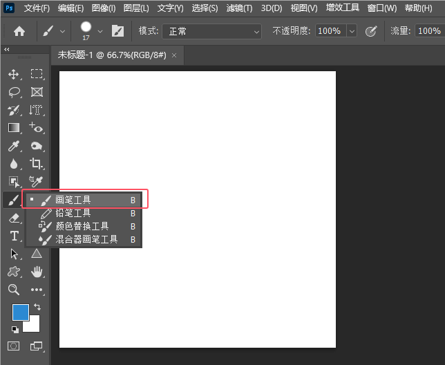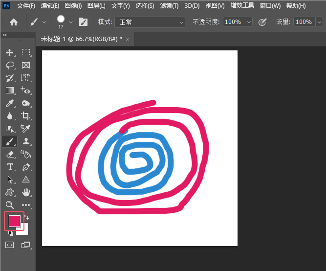 3、注意前景颜色是蓝色,画笔画出来的图像也是蓝色。