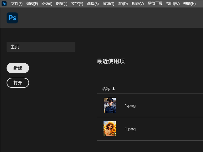 1、打开PS软件,点击新建选项。