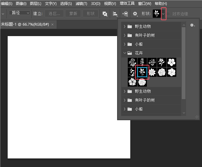 4、然后选择花卉形状里面的花朵。