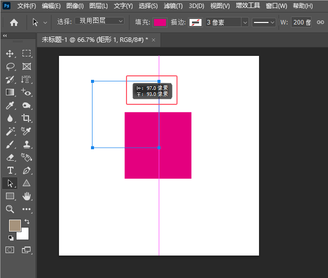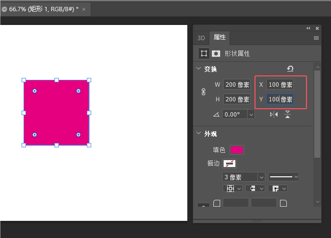 2、选择【矩形】后,【移动矩形】就可以看到【X,Y】的移动【坐标值】。