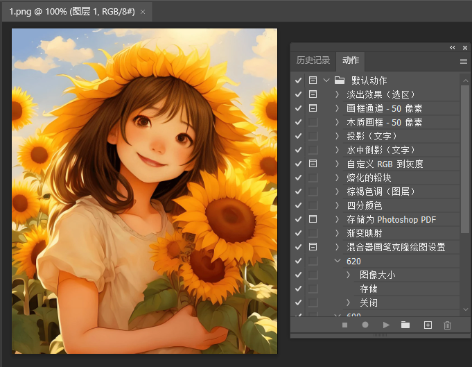 3、这样就打开了【动作】面板。如下图: