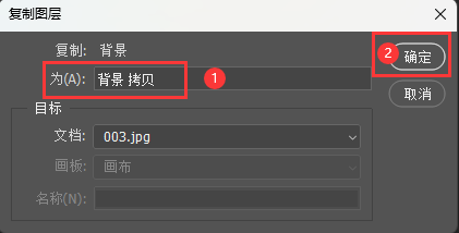 3、弹出【复制图层】对话框,设置【名称】,点击【确定】。