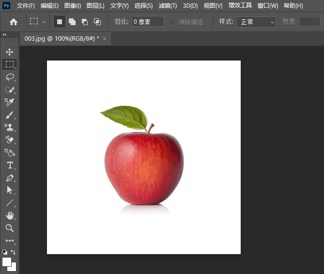 2、然后点击矩形选框工具,选择下面的苹果对象。