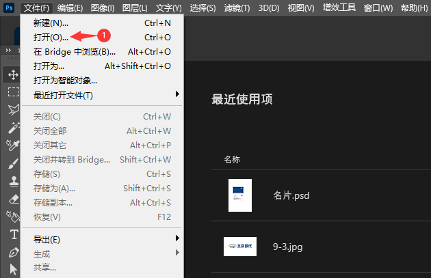 1、打开【PS2022】软件,点击【文件】菜单,点击【打开】选项。如下图: