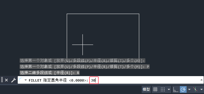 2、然后点击圆角工具,或是输入FILLET命令空格。